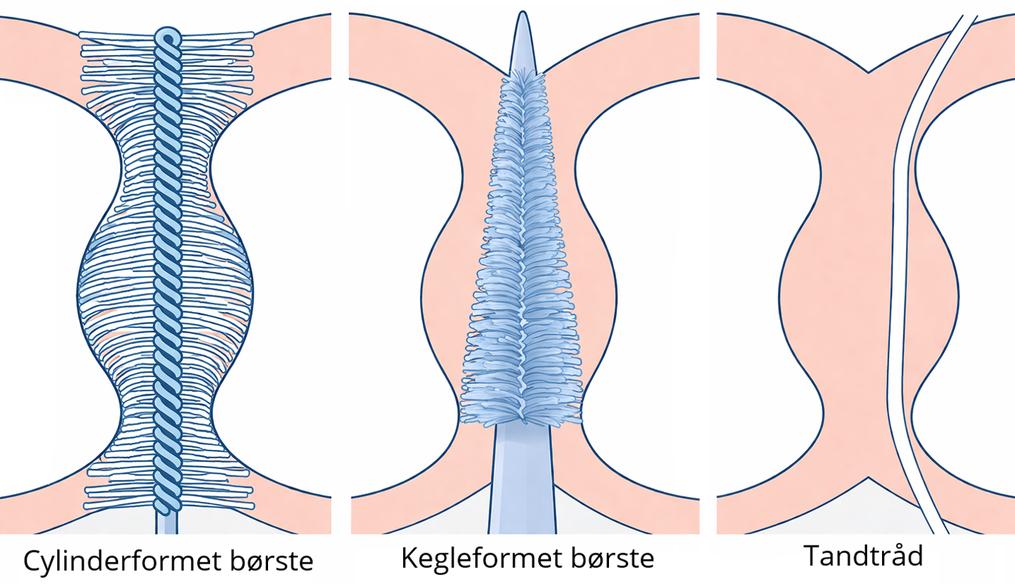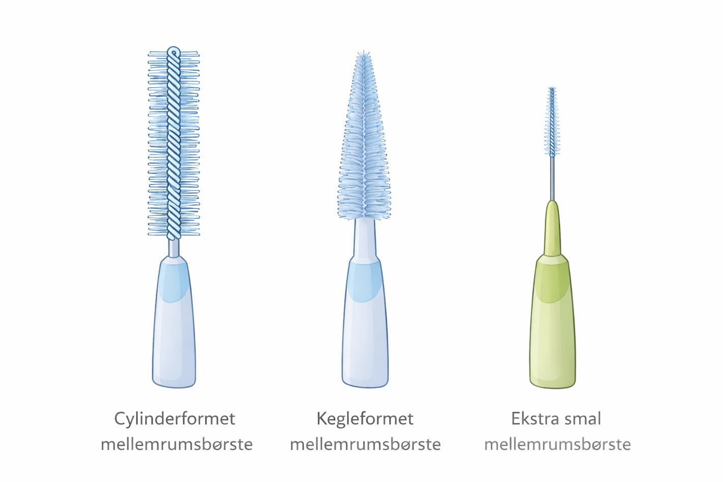 Det anbefales at bruge mellemrumsbørster til den daglige rengøring mellem tænderne. Valget af type afhænger af ens tænder og mund- og tandsundhed.