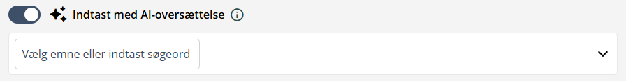 Hvis funktionen Indtast med AI-oversættelse er slået til, vil de søgeord eller spørgsmål (også på dansk), du indtaster, automatisk blive oversat med kunstig intelligens (AI) til en søgning i PubMed. Hvis du slår funktionen fra, bliver din søgning sendt direkte til PubMed præcis, som du har indtastet den. Du skal derfor bruge engelske ord og søgetags. Læs mere om, hvordan du laver søgninger til PubMed, herunder brugen af søgetags (engelsk).